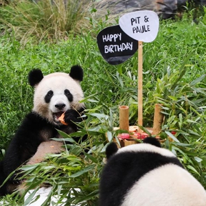 柏林动物园为德国出生大熊猫双胞胎庆祝生日
