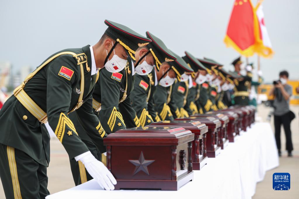 中国退役军人事务部副部长常正国率中方交接代表团出席仪式,韩国国防部次官朴宰民率韩国送还中国军人遗骸代表团出席仪式。中韩双方代表现场签署交接书,确认交接109位在韩中国人民志愿军烈士遗骸及相关遗物。中国驻韩国大使邢海明为志愿军烈士棺椁覆盖国旗,中方举行悼念仪式,中国人民解放军礼兵护送烈士棺椁登上解放军空军专机,烈士英灵将回到祖国和人民怀抱。