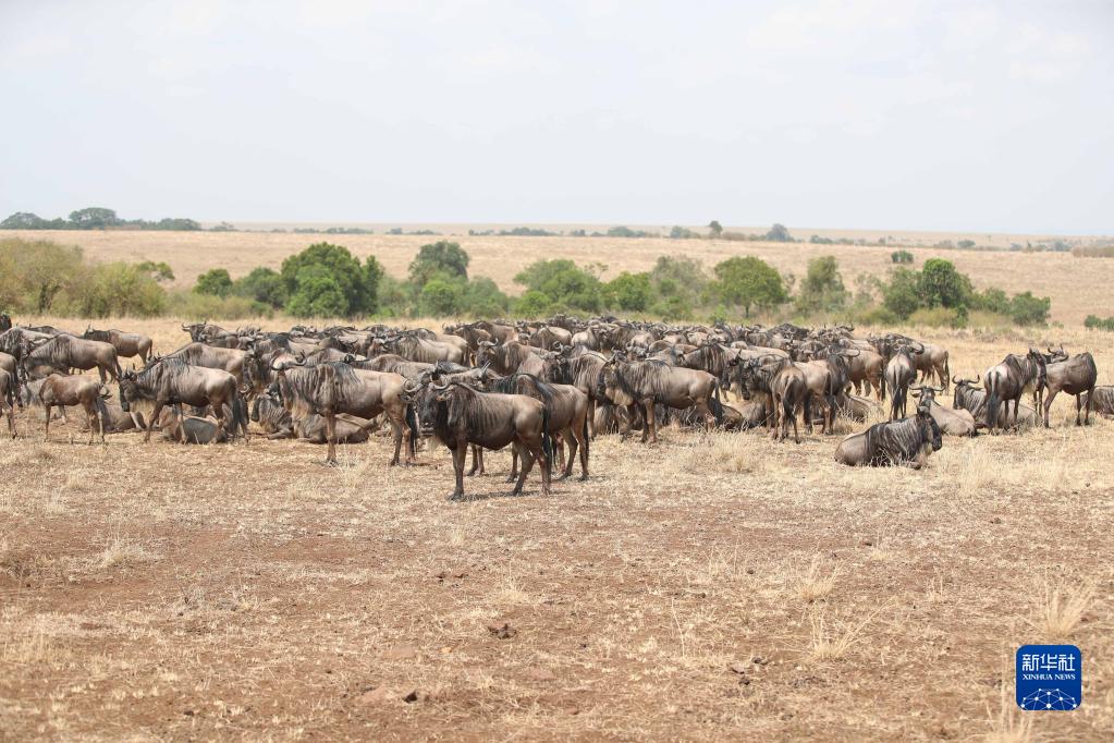 这是8月30日在肯尼亚马赛马拉国家保护区拍摄的角马。