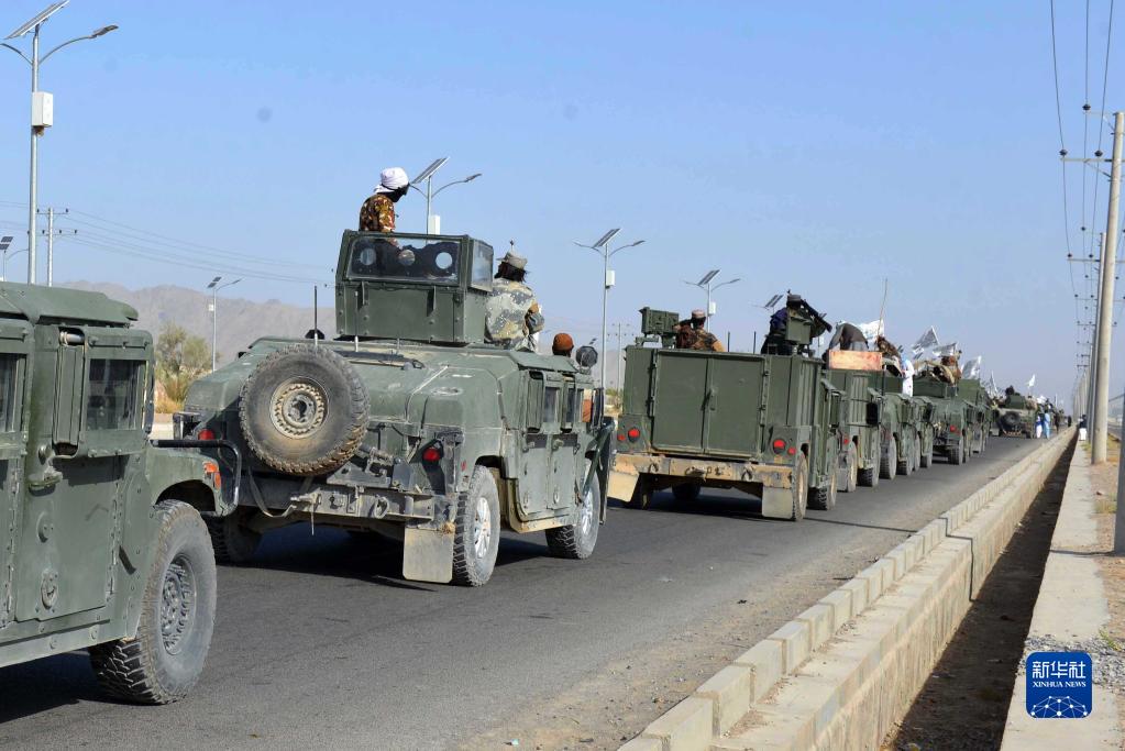 9月1日,大量塔利班成员乘坐军事车辆行进在阿富汗坎大哈街头。