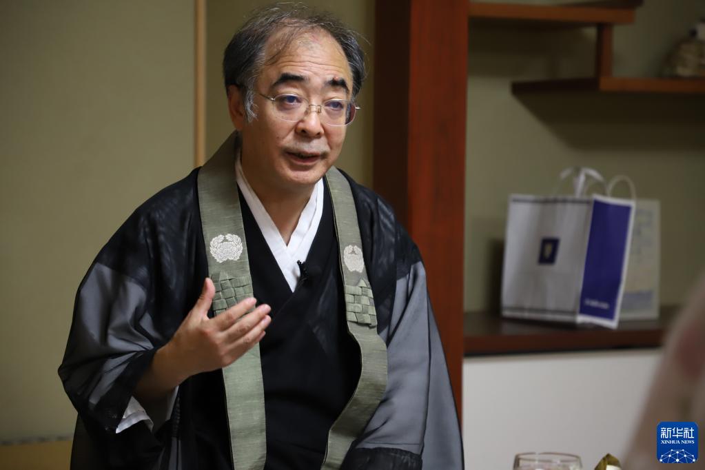 8月20日,日本爱知县圆光寺住持大东仁在寺内接受记者采访。新华社记者 钞文 摄