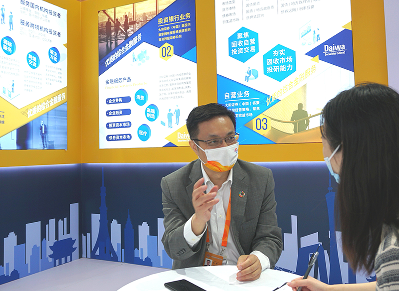 9月4日,在2021年服贸会金融服务专题展上拍摄的大和证券(中国)有限责任公司展台。新华网 葛培媛摄