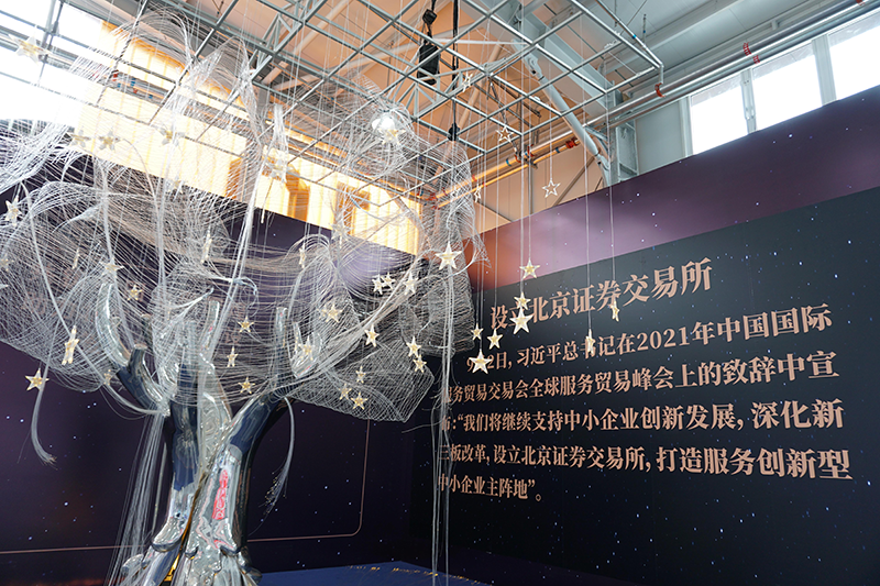 9月4日,在2021年服贸会金融服务专题展上拍摄的关于“设立北京证券交易所”的海报。 新华网 葛培媛摄
