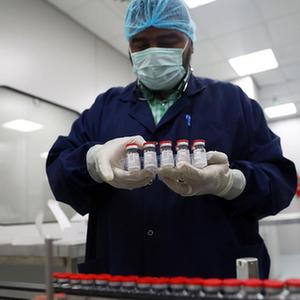 9月6日,在位于埃及吉萨的埃及生物制品与疫苗公司,工作人员在疫苗生产厂展示生产的新冠疫苗。
