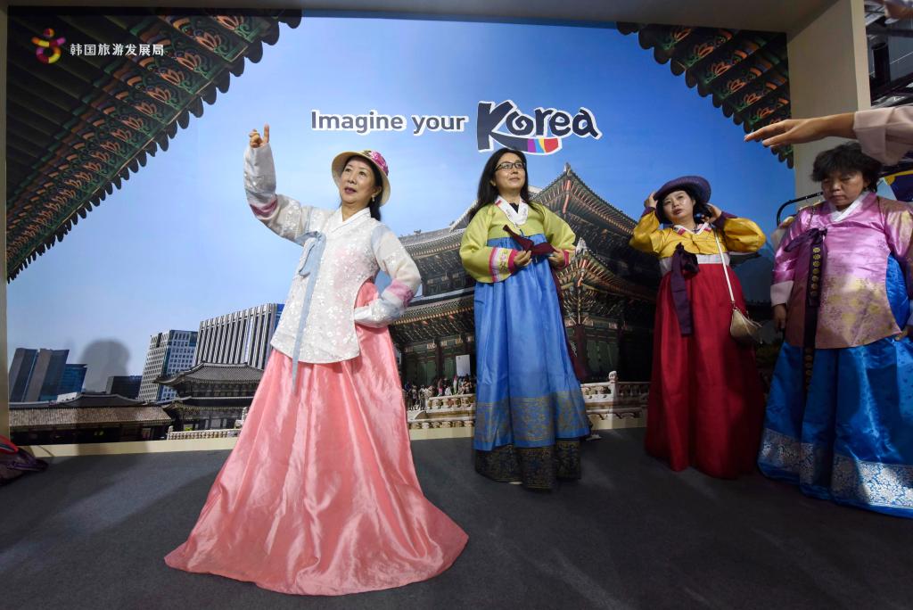9月7日,观众在服贸会国家会议中心国别展区的韩国展台拍照留念。(新华社记者武巍摄)