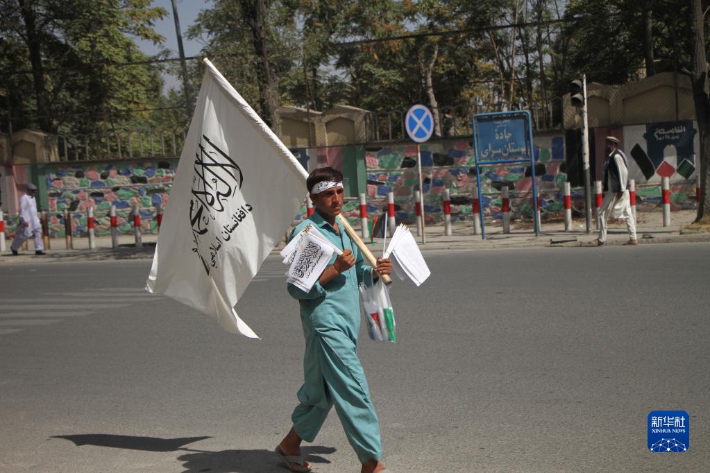 9月8日,一名小贩在阿富汗喀布尔街头售卖旗帜。