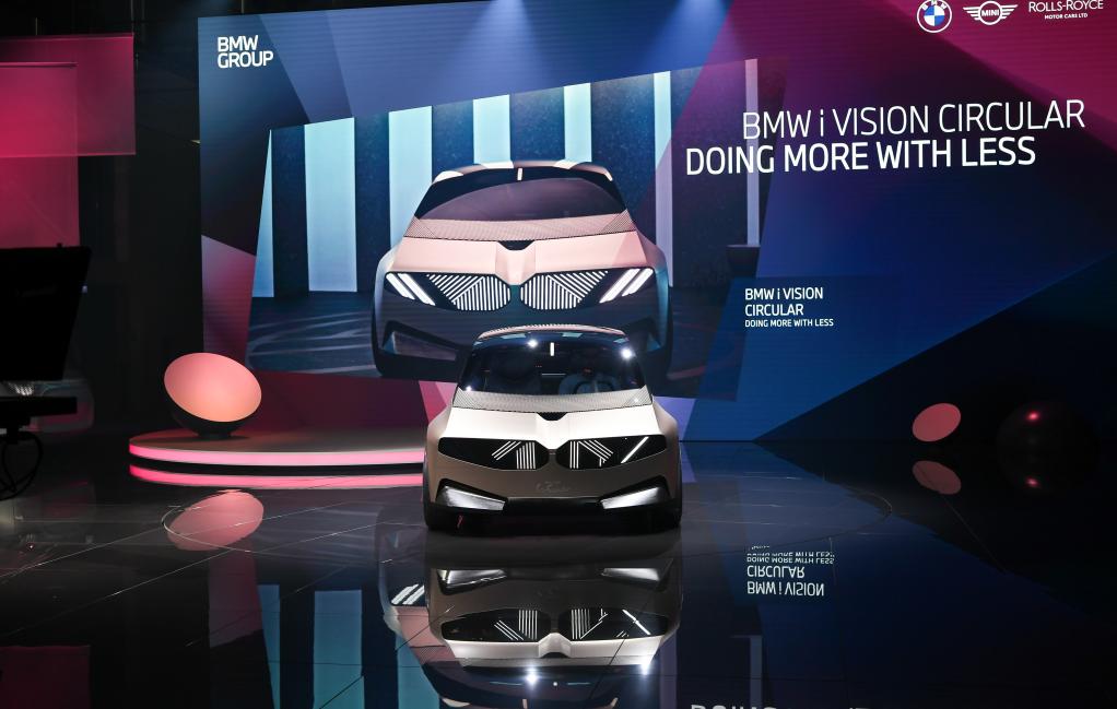 9月6日在德国慕尼黑举办的德国国际汽车及智慧出行博览会媒体日期间拍摄的宝马i循环概念车。新华社记者逯阳摄