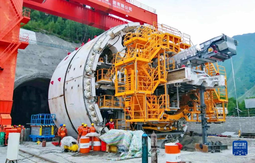 中国制造的全球最大直径全断面硬岩掘进机“高加索号”日前在格鲁吉亚组装完毕并投入使用。“高加索号”掘进机将主要应用于格鲁吉亚南北交通走廊科维谢提至科比段公路隧道的施工,由中铁隧道局集团和中铁装备集团联合研制,完全采用中国设计、中国标准,由中方独立制造。掘进机直径15.08米,全长182米,总重量3900吨,最大推力2.26万吨,总功率9900千瓦,是目前全球最大直径全断面硬岩掘进机。新华社发(中国中铁隧道局集团供图)
