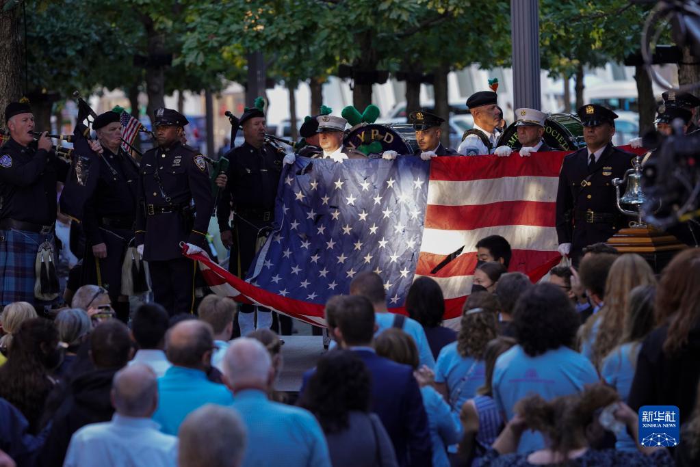 当日,纽约世贸中心双子塔遗址举行“9·11”恐怖袭击事件二十周年纪念活动。新华社记者王迎摄