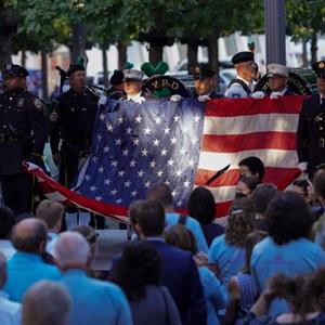 9月11日,在美国纽约,人们参加“9·11”恐怖袭击事件二十周年纪念活动。