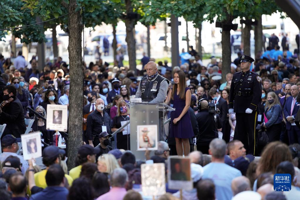 当日,纽约世贸中心双子塔遗址举行“9·11”恐怖袭击事件二十周年纪念活动。新华社记者王迎摄