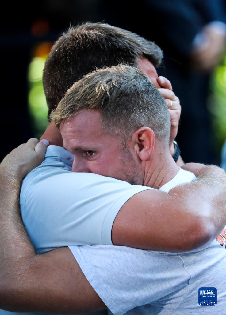 9月11日,在美国纽约,人们在“9·11”恐怖袭击事件二十周年纪念活动上相拥而泣。