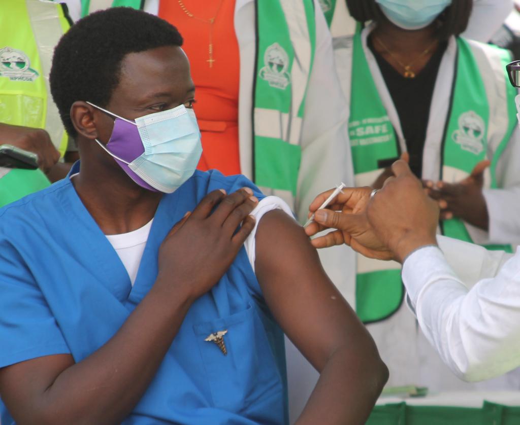 3月5日,一名医务工作者在尼日利亚阿布贾接种新冠疫苗。新华社发(罗伯特·奥巴摄)