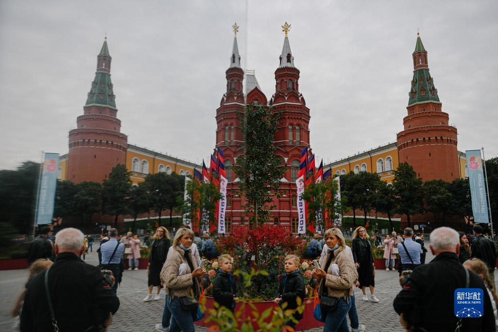 9月11日,人们在俄罗斯首都莫斯科市中心漫步。