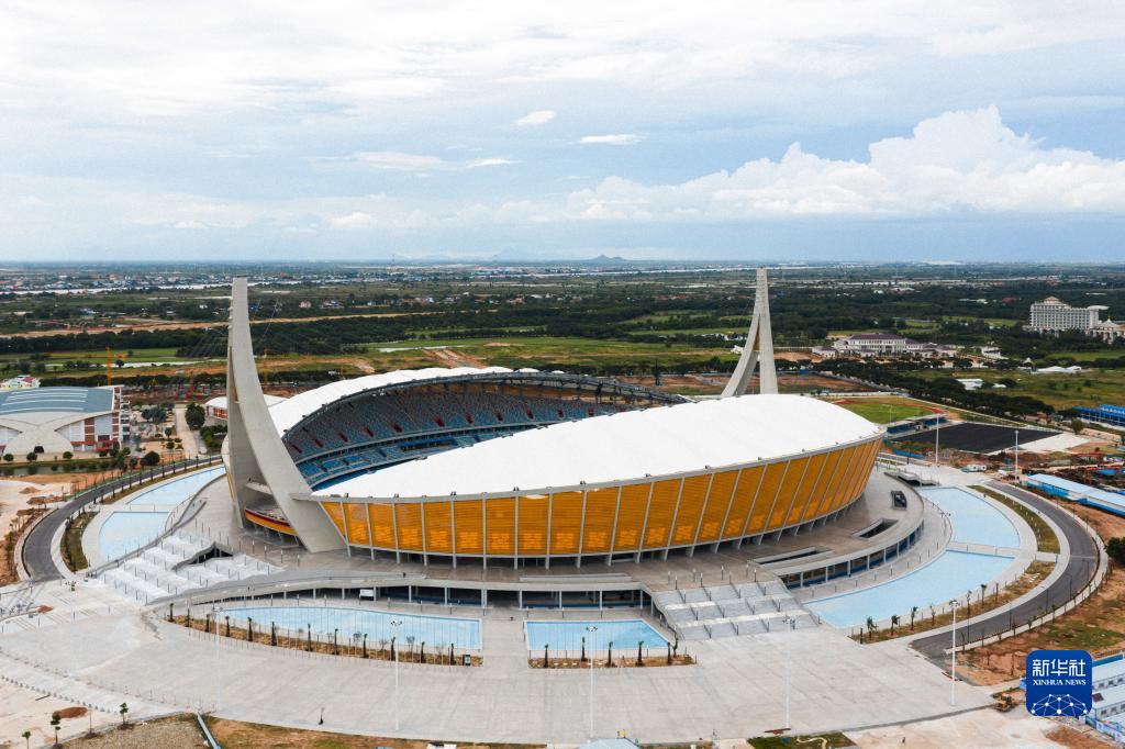 这是9月12日在金边拍摄的柬埔寨国家体育场(航拍照片)。