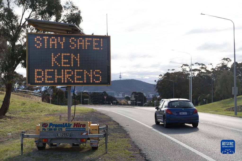这是9月14日在澳大利亚堪培拉拍摄的封城期间的警示牌。