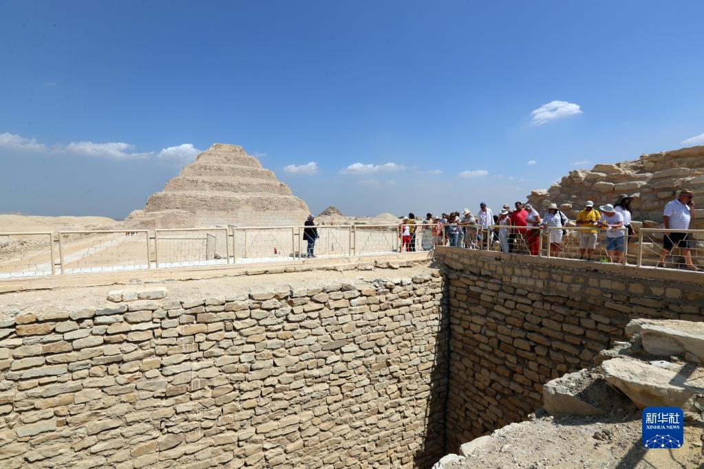 9月14日,游客在埃及首都开罗以南的塞加拉地区一座左塞尔时期古墓的地上建筑游览。