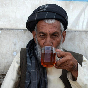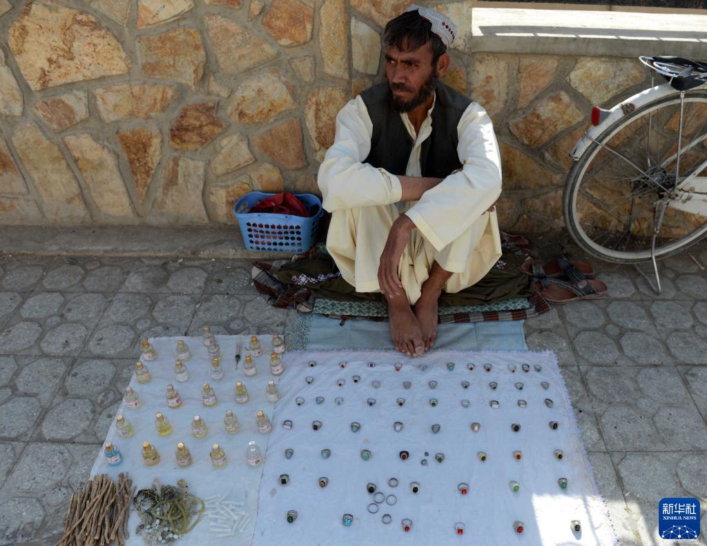 9月14日,一名商贩在阿富汗坎大哈街头等待顾客。