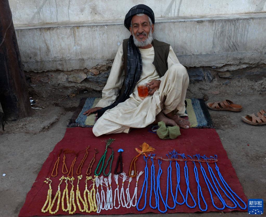 9月14日,一名商贩在阿富汗坎大哈街头等待顾客。