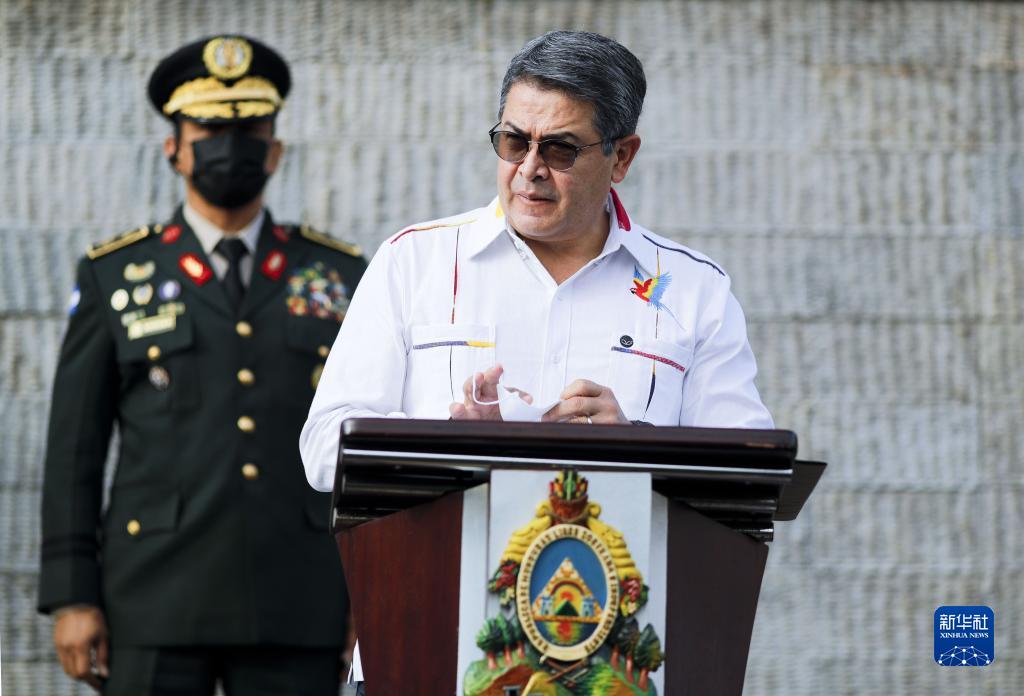 9月15日,在洪都拉斯首都特古西加尔巴,总统胡安·奥兰多·埃尔南德斯在庆祝仪式上讲话。