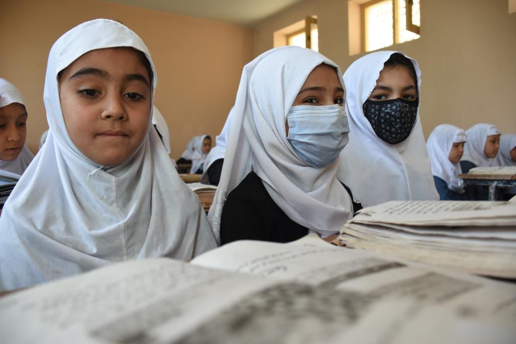 9月14日,阿富汗女童在巴尔赫省首府马扎里沙里夫的一所学校内上课。新华社发(卡瓦·巴沙拉特 摄)