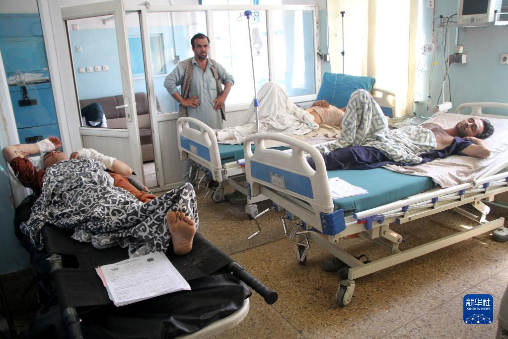8月27日,伤者在阿富汗首都喀布尔一家医院接受治疗。喀布尔国际机场外8月26日发生自杀式炸弹袭击事件,致使大量阿富汗平民和至少13名美军士兵丧生。极端组织“伊斯兰国”阿富汗分支宣称发动袭击。新华社发(塞夫拉赫曼·萨菲摄)