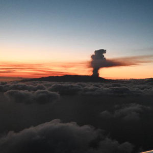 9月19日,西班牙度假胜地拉帕尔马岛老昆布雷火山喷发时形成烟柱。