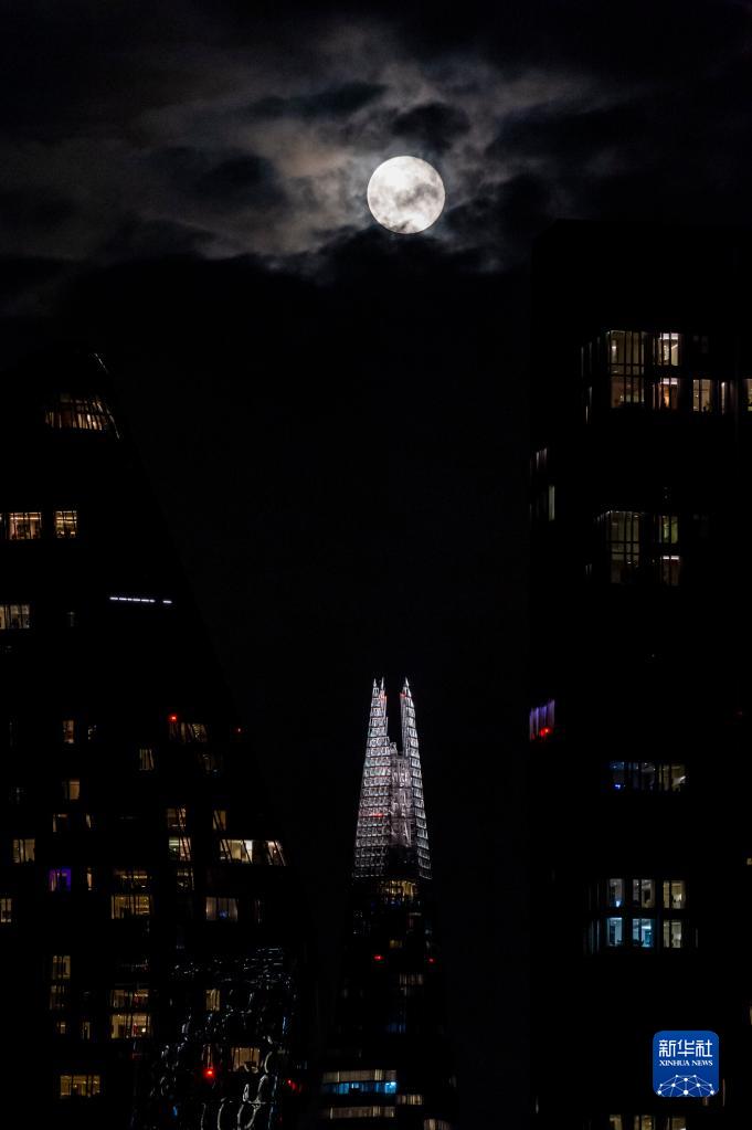 9月21日,满月在英国伦敦的“碎片大厦”上空升起。
