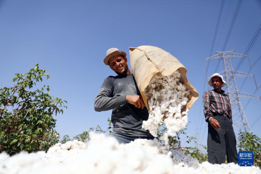 9月22日,农民在埃及尼罗河三角洲地区谢赫村省的棉田中采摘棉花。