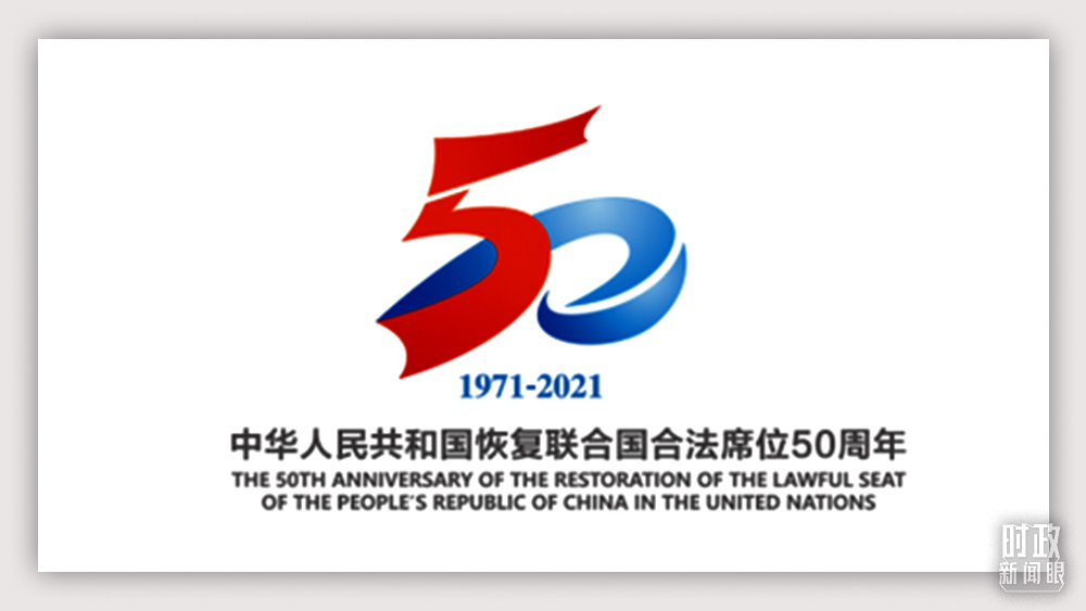 △2021年6月15日,外交部发布“中华人民共和国恢复联合国合法席位50周年”主题标识。主题标识以中华人民共和国国旗红色和联合国旗帜蓝色为主色调,由数字“50”同“飘带”造型融合而成,寓意交融共赢。