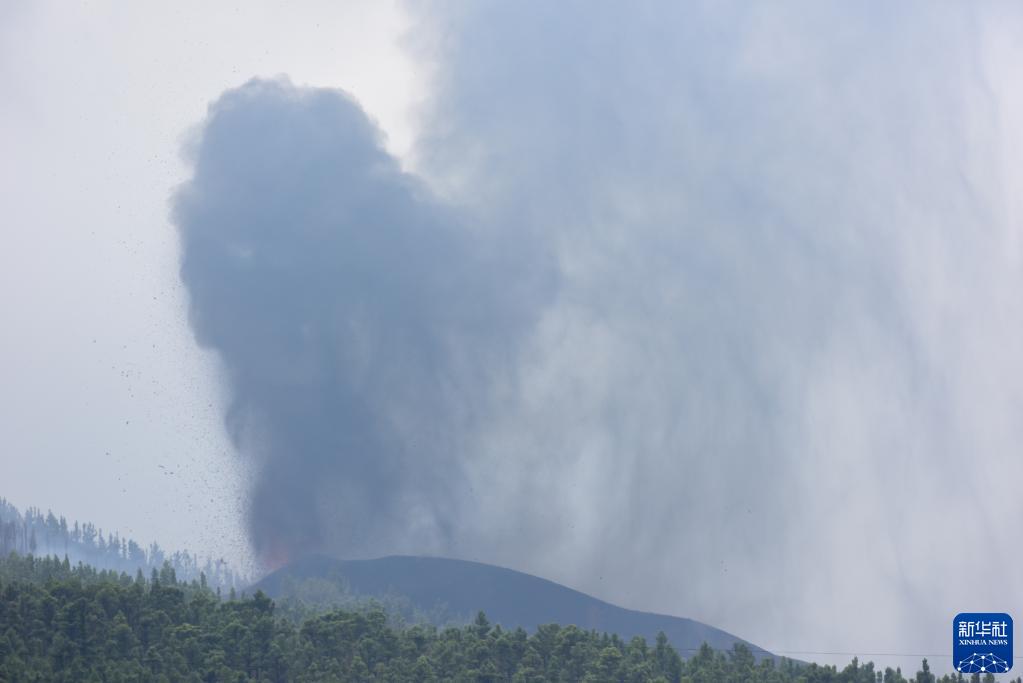 9月21日,西班牙加那利群岛拉帕尔马岛的老昆布雷火山浓烟滚滚。