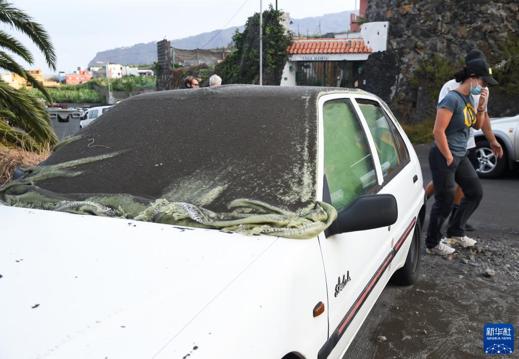 9月22日,在西班牙加那利群岛拉帕尔马岛上,汽车车身上覆盖着老昆布雷火山喷发出的火山灰。