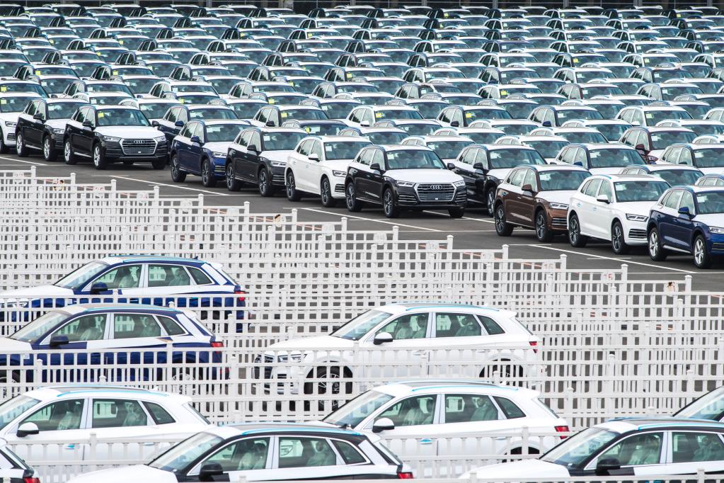 2019年7月9日,在吉林长春,一汽-大众奥迪Q5L汽车停放在仓储停车场内等待外运。新华社记者许畅摄
