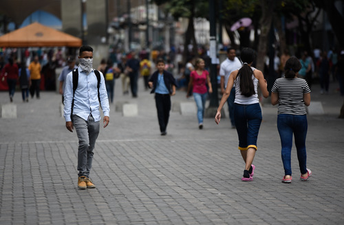 2020年3月13日,在委内瑞拉首都加拉加斯,一名男子用围巾遮住脸自我保护。新华社发(萨尔戈多摄)