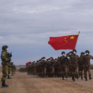 9月24日,在俄罗斯奥伦堡州东古兹靶场举行的“和平使命-2021”上海合作组织联合反恐军事演习闭幕式上,中方参演部队官兵代表接受奖章。新华社记者梅世雄摄