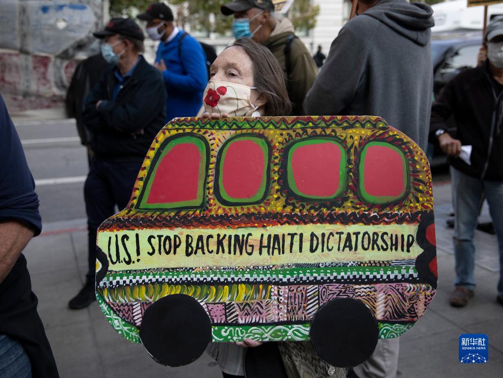 9月24日,民众在美国旧金山抗议美国政府驱逐海地难民。