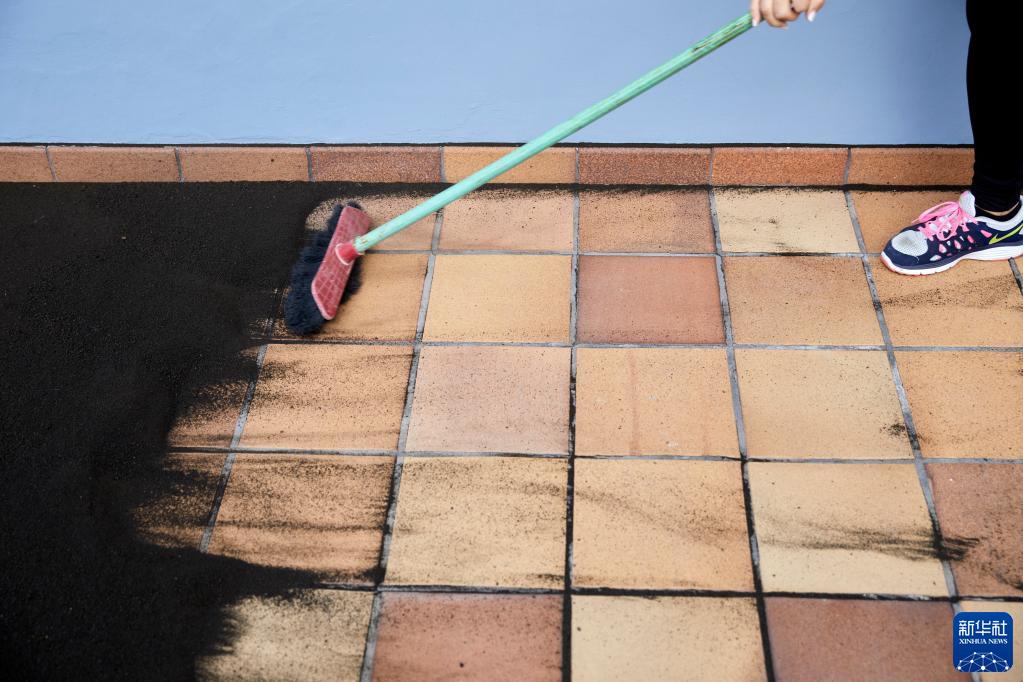 9月24日,一名居民在西班牙拉帕尔马岛清理火山灰。新华社记者 孟鼎博 摄