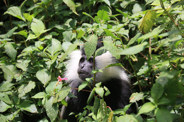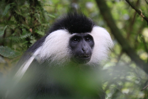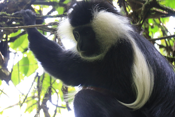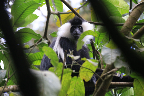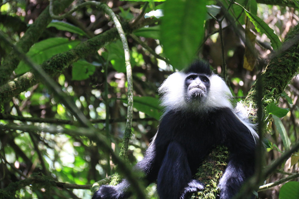 黑白疣猴栖息于非洲热带丛林中,