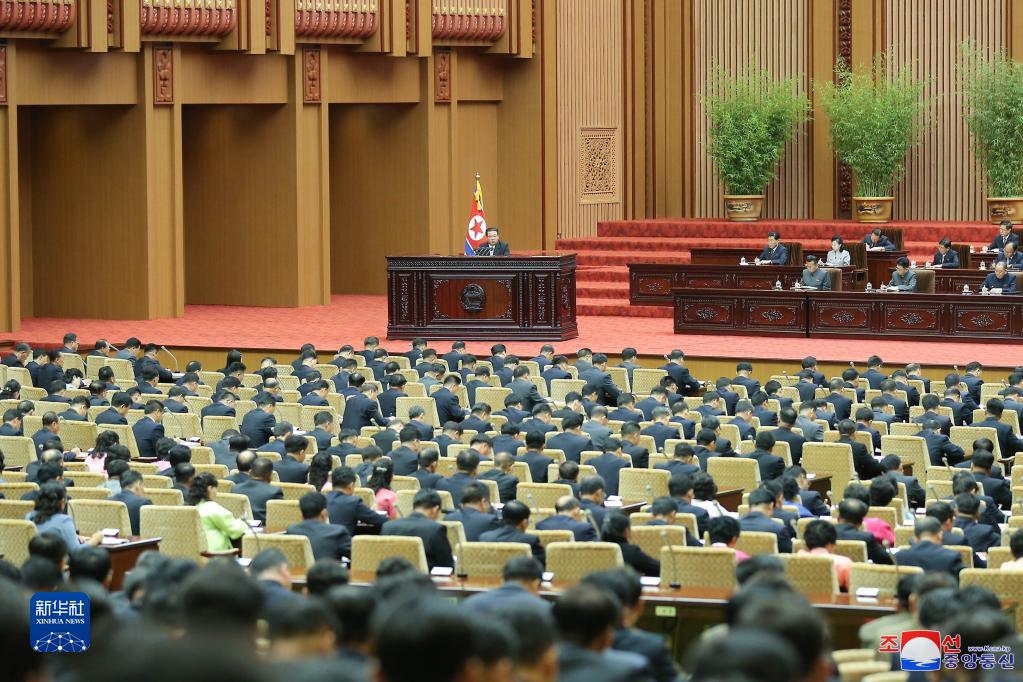 这张朝中社9月30日提供的图片显示的是29日举行的朝鲜第十四届最高人民会议第五次会议第二天会议现场。新华社/朝中社