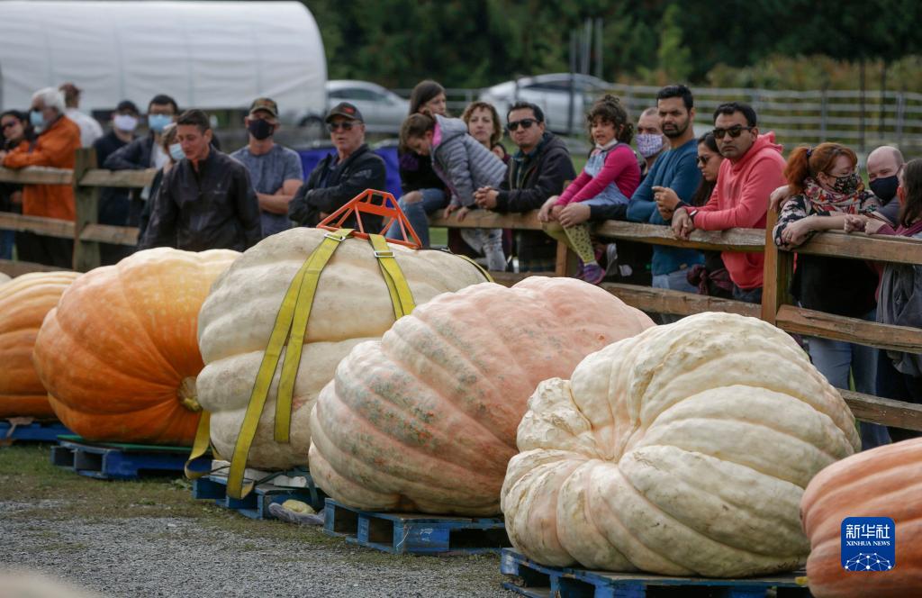 当日,加拿大不列颠哥伦比亚省兰利市举行年度巨型南瓜大赛,吸引数十位巨型南瓜种植者参赛。本届最重南瓜重达1911磅。