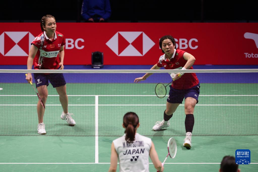 10月3日,中国队组合陈清晨(左)/贾一凡在女双比赛中。最终,她们以2比0战胜日本队组合松本麻佑/松友美佐纪。