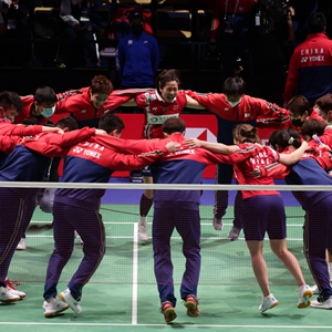 当日,在芬兰万塔举行的2021苏迪曼杯羽毛球混合团体赛决赛中,中国队以3比1战胜日本队,获得冠军。