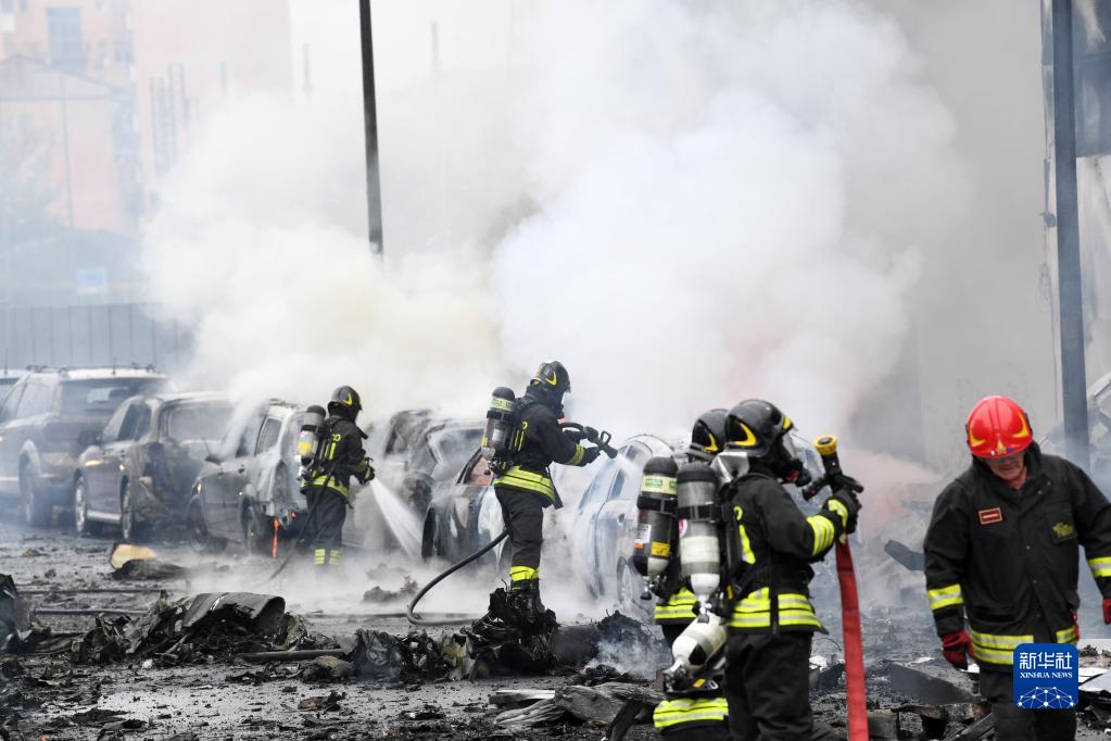 10月3日,消防员在意大利米兰郊区的事故现场工作。
