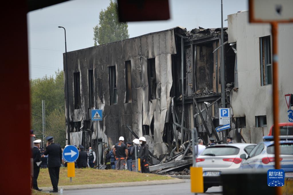 10月3日,应急人员在意大利米兰郊区的事故现场工作。