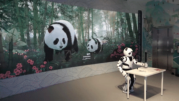 优悠不仅能提供导览讲解服务,还会展示太极、瑜伽、舞蹈以及写字画画等技能。它在中国馆“智慧生态”分展区,为观众介绍“中国熊猫生态长卷”“智慧农业”等展项,让观众了解中国一直以来倡导的绿色发展理念。