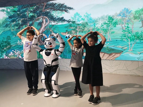 在“创新与合作”展区,优必选公司创新研发的熊猫造型机器人优悠成为中国馆的“小明星”。拥有41个“关节”的优悠憨态可掬,四肢灵巧,是中国馆的“和平友好使者”。与熊猫机器人互动成为小朋友们在中国馆参观的一大乐趣。