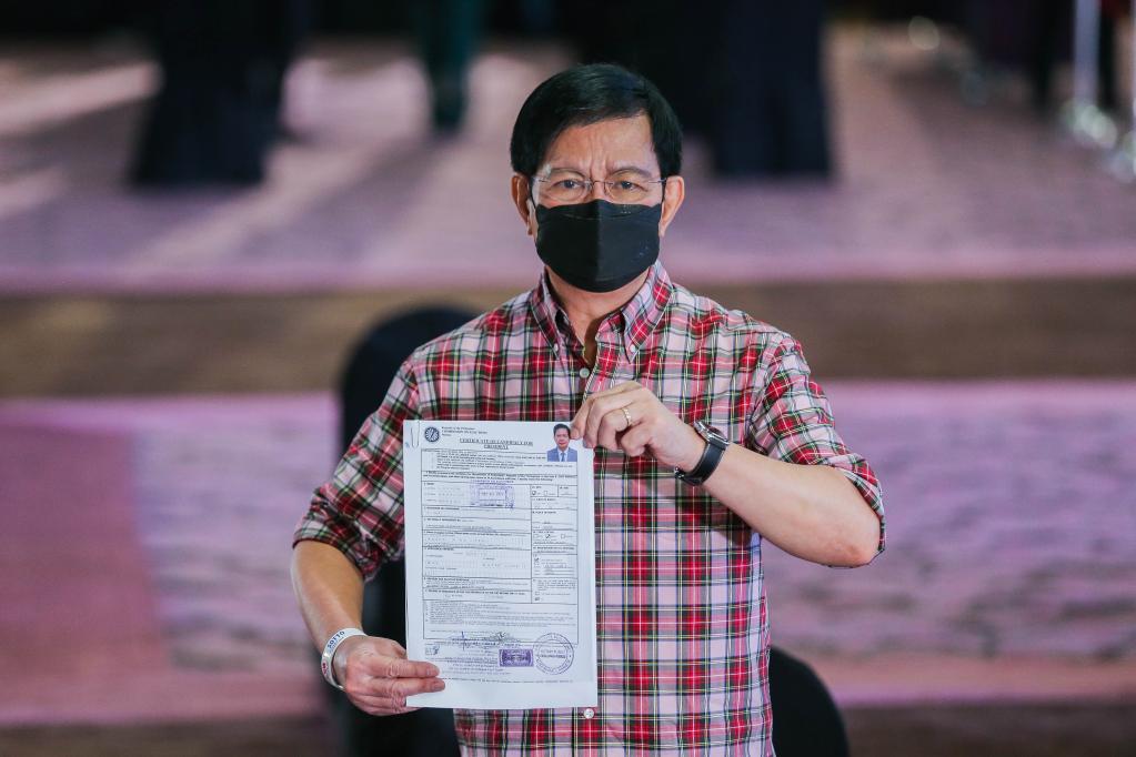 10月6日,参议员潘菲洛·拉克松提交了参加2022年5月总统竞选的候选人资格申请。 新华社发(乌马利摄)