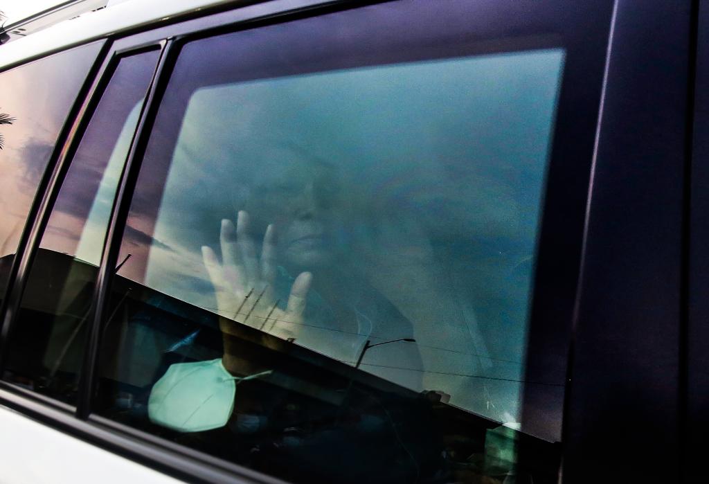 10月1日,菲律宾现任总统罗德里戈·杜特尔特在车内挥手致意。当天他宣布退出政坛并支持参议员克里斯托弗·吴竞选副总统。 新华社发(乌马利摄)