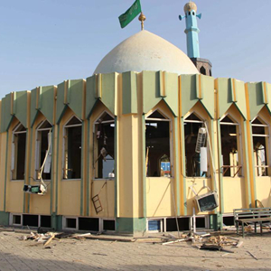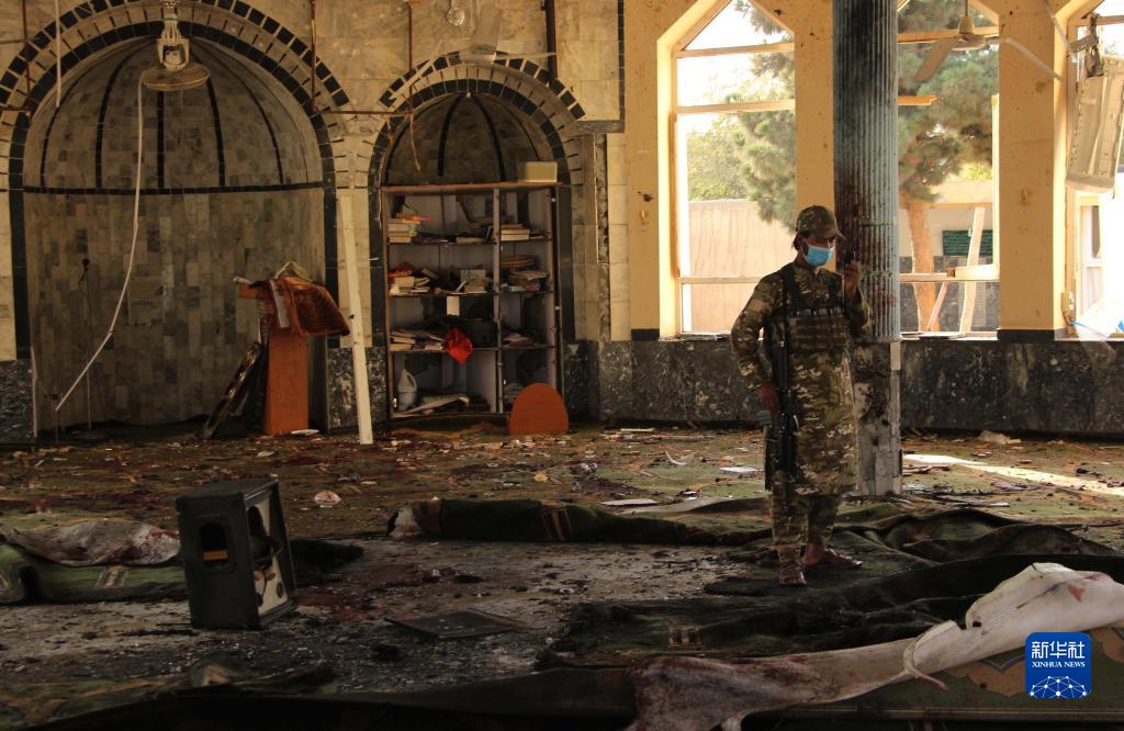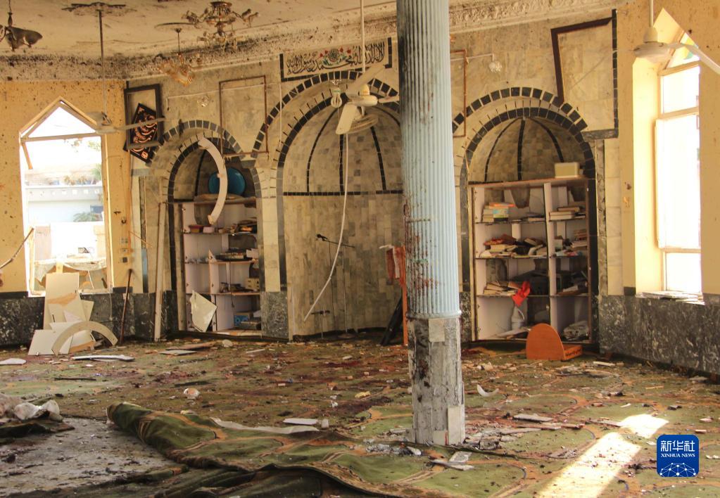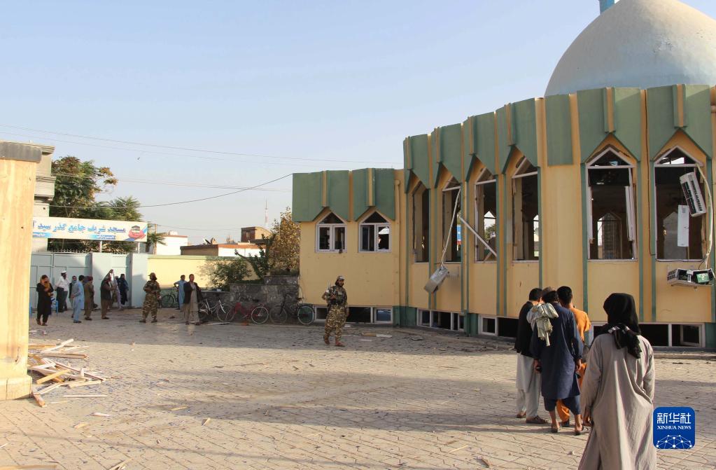 这是10月8日在阿富汗昆都士拍摄的遭爆炸袭击的清真寺。新华社发(阿杰马勒·卡卡尔摄)