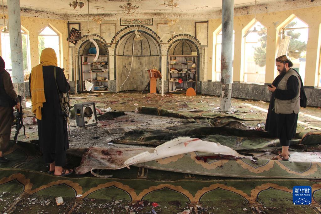 这是10月8日在阿富汗昆都士拍摄的清真寺爆炸现场。新华社发(阿杰马勒·卡卡尔摄)